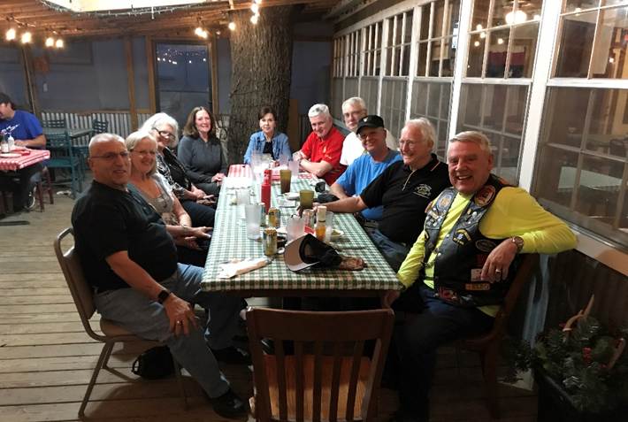 Day 2 was another beautiful day and we rode the hills of central Texas. We stopped in Spanish Oaks (just west of Austin) and Sam and Barbara Granett hosted us to a great lunch at their community center. We had the whole place to ourselves, and it was a great time to visit. We returned to Comfort that night for a nice dinner in town.